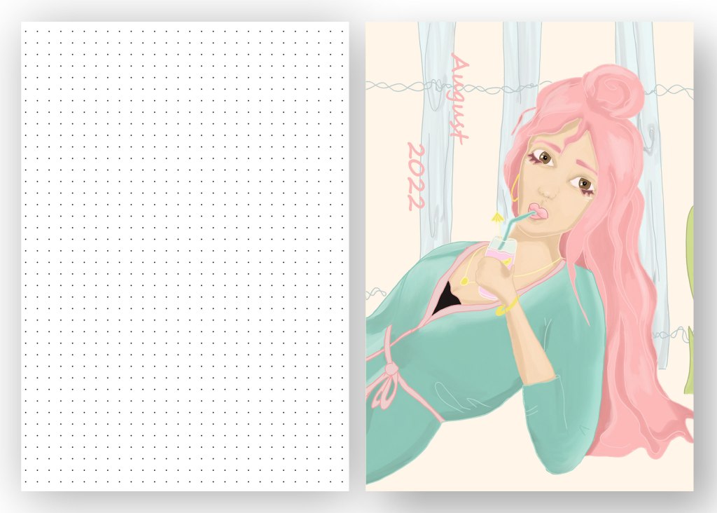 This is a planner for the 2021-2022 year. I designed this planner for myself based on research I collected from the planner community. The majority of the planner was made using InDesign, which consisted of 256 pages total, with each monthly divider illustrated by myself using programs such as Adobe Fresco, Photoshop, and Illustrator. The planner has black and white insert spreads so there would be endless possibilities for using it (stickers, drawings, washi tape, and more). For paper size, A5 is the perfect size to carry your planner anywhere. I opted for an A5 6-ring binder which gives flexibility to add or remove pages.