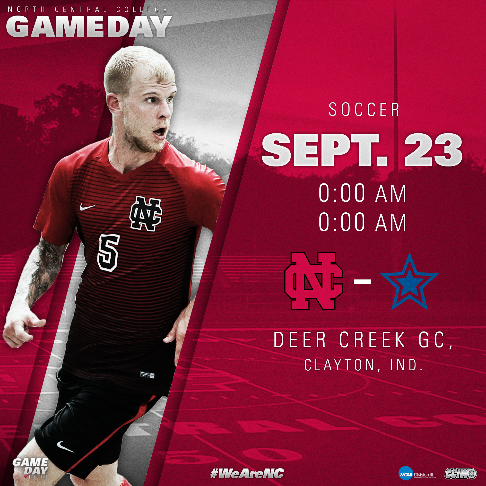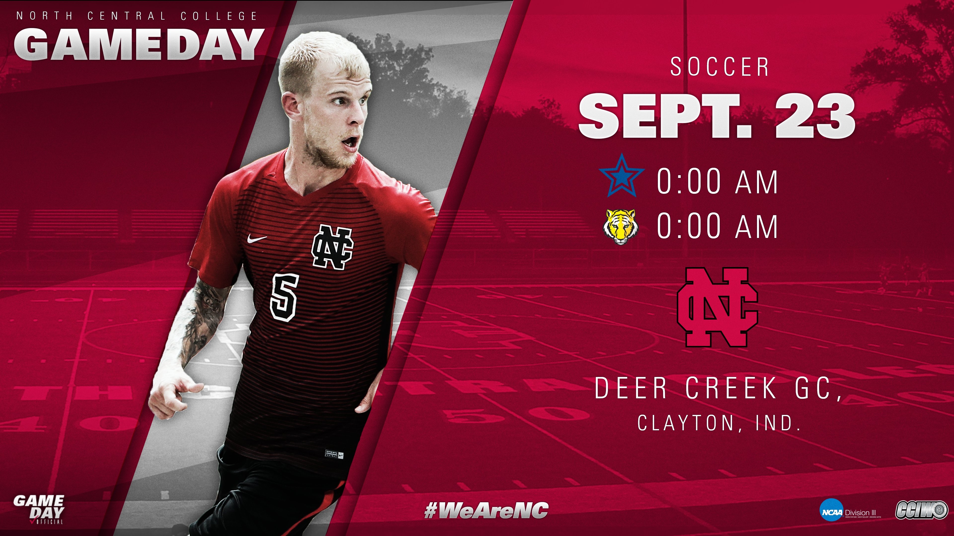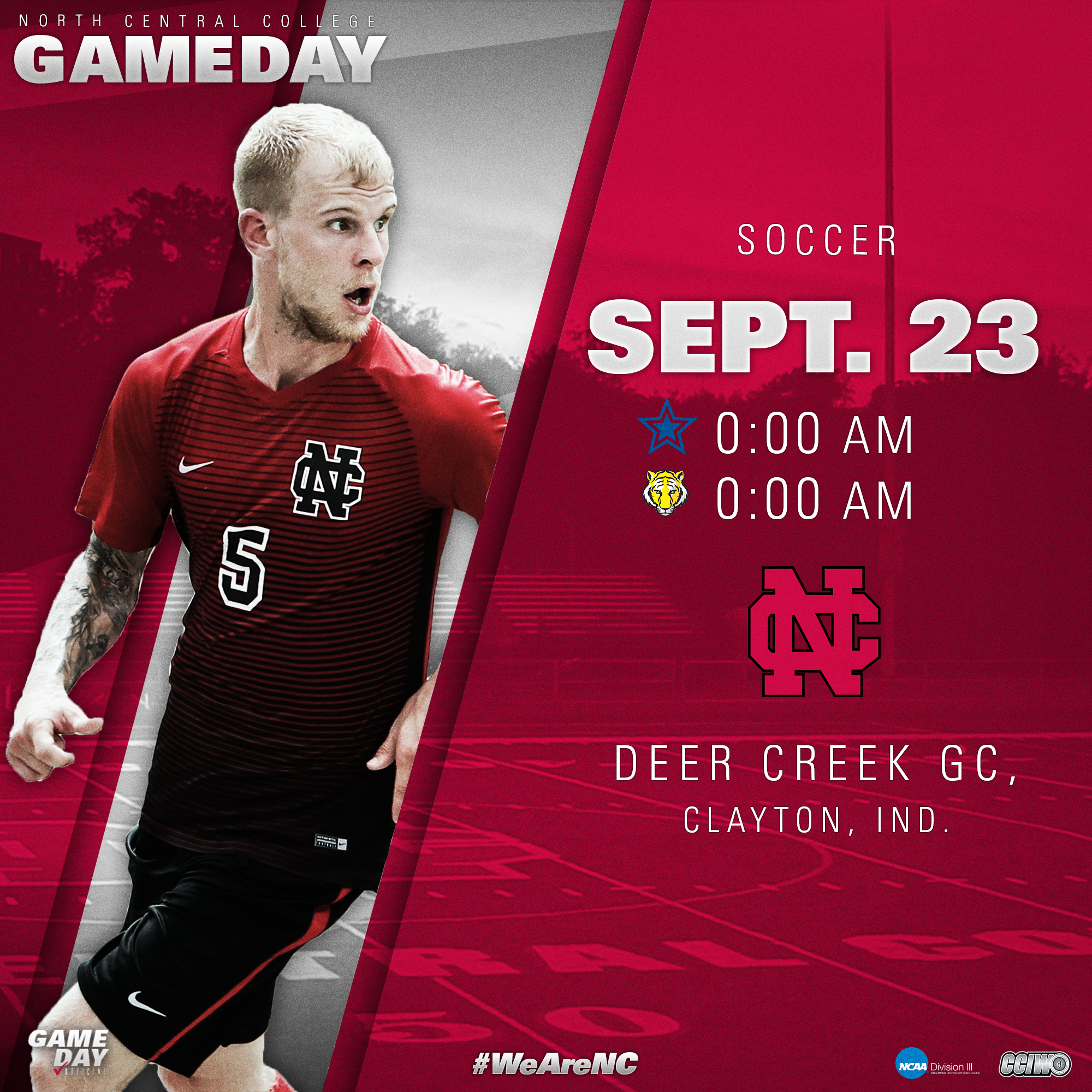 North Central College Athletics needed an easy template to announce the sporting events on social media. This included creating a 1×1 for Instagram and a 16×9 for Twitter and Facebook. The template needed to fit with the branding of the college as well as including details such as times, opponents, location, and the ability to be easily edited by those not as familiar with the Adobe Suite.